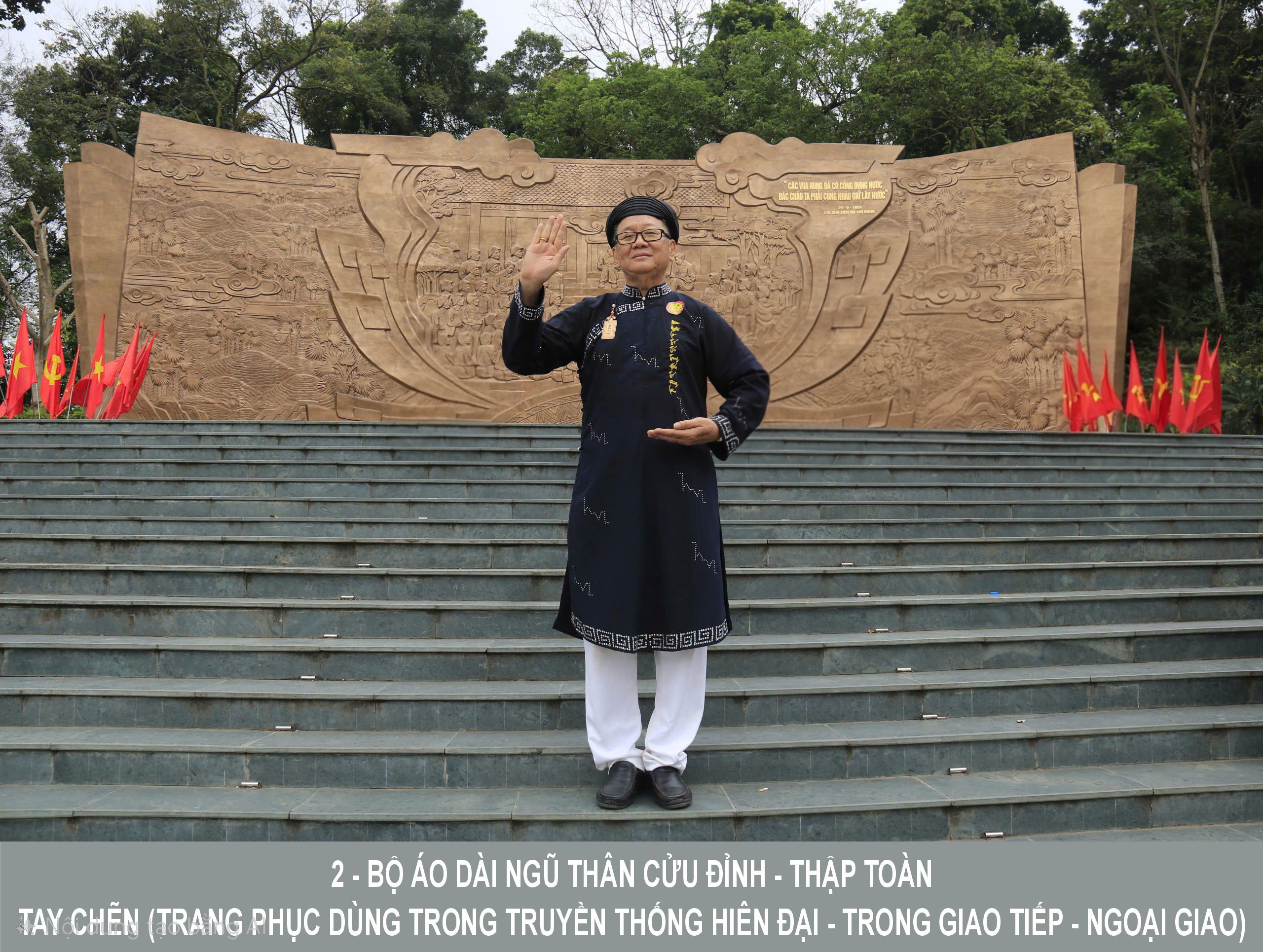 ÁO DÀI NGŨ THÂN CỬU ĐỈNH TAY CHẺN - XANH THANH - ĐÍNH ĐÁ